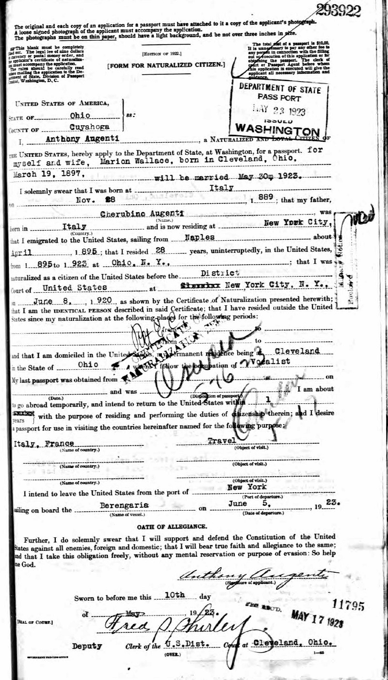 This Anthony is the younger brother of Nicholas Augenti (1875-1952). Both are the sons of Cherubino Augenti (1844-1930) and Maria Taralyia (1850-1919).