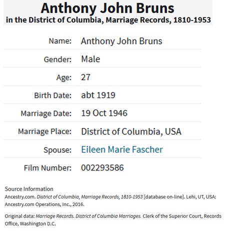 Anthony Bruno and Eileen Fascher Marriage Record