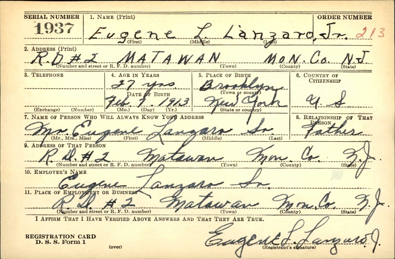 Eugene Lanzaro WW2 Draft Registration