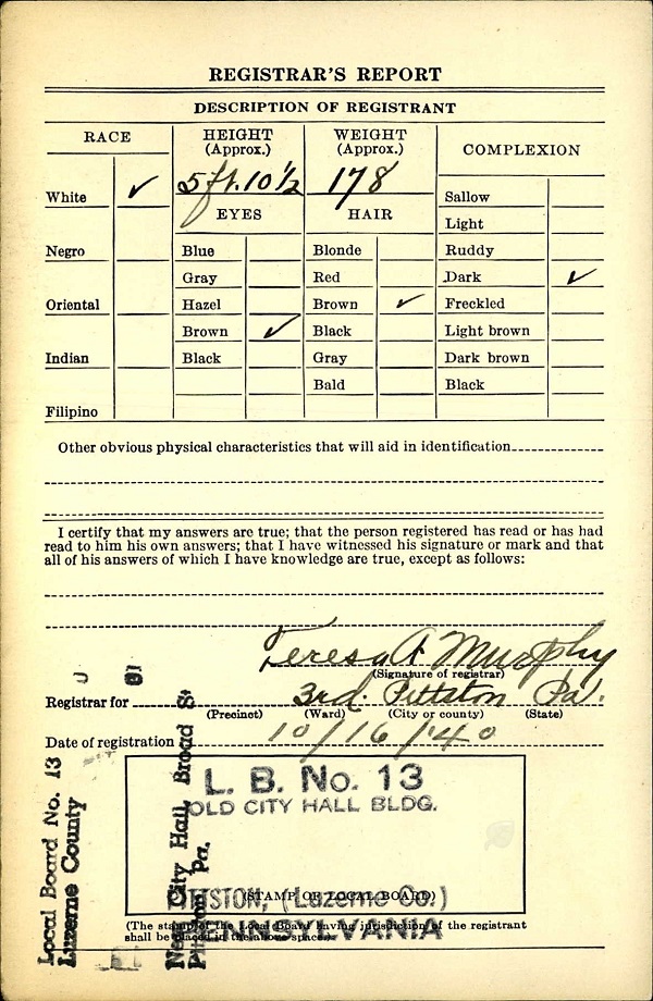 Joseph Bruno World War II Draft Registration