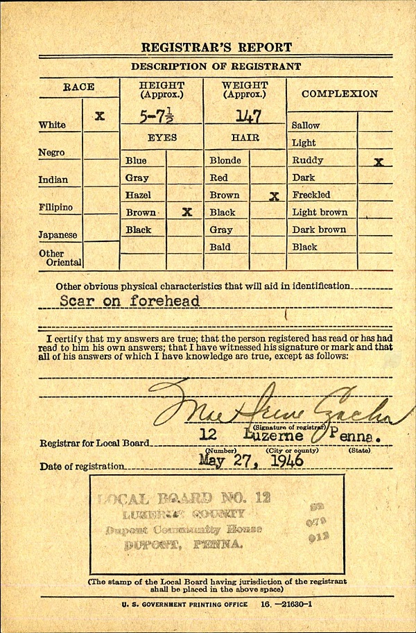 World War II Draft Registration Card