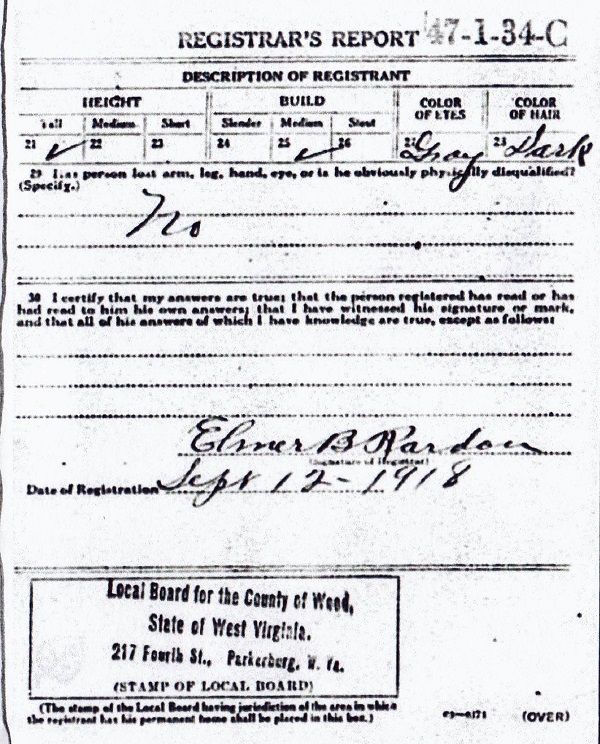 World War I Draft Registration Card