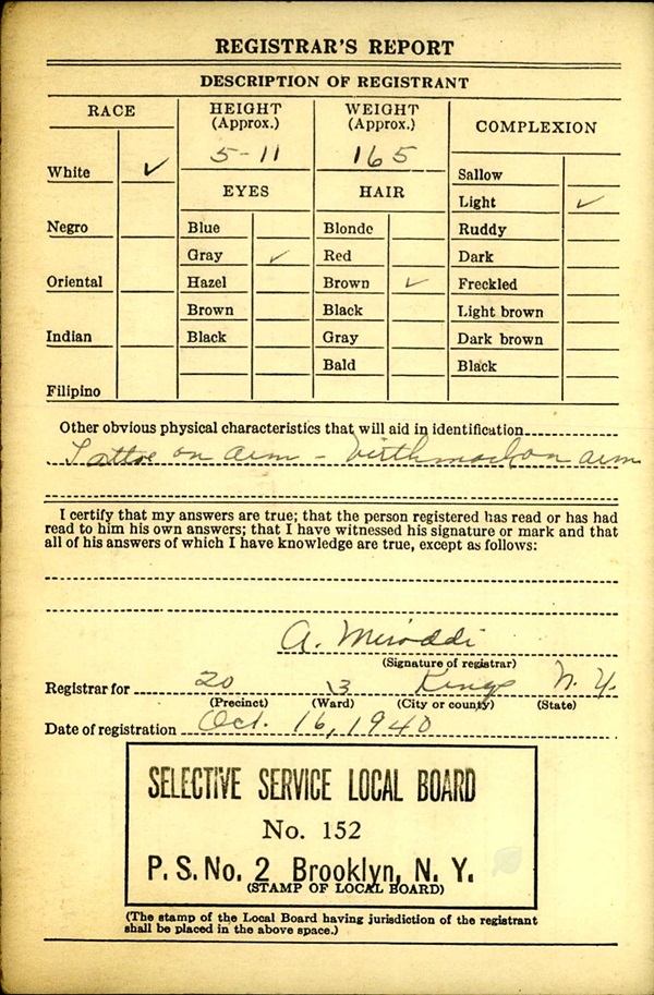 Salvatore Grossetto World War II Draft Registration