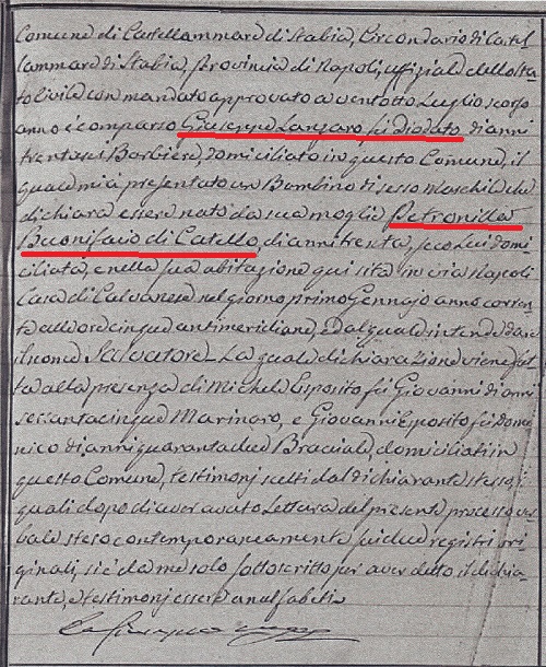In August of 1999, I wrote to the state civil office in Castellammare di Stabia asking for the birth record